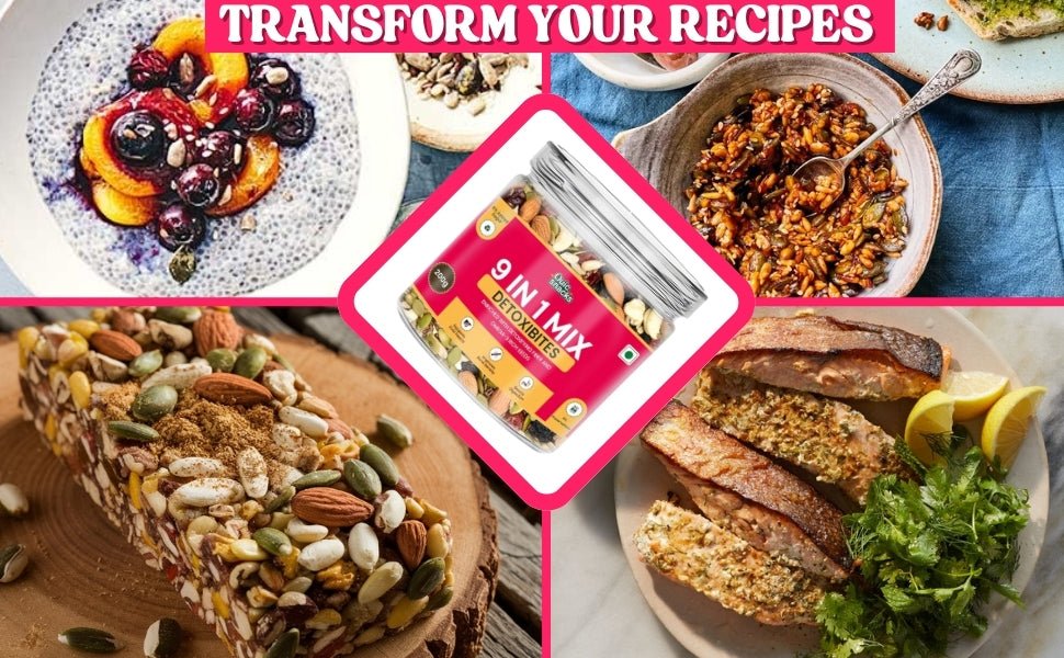 Cleanse Naturally with QuicSnacks DetoxiBites, a mix of seeds and nuts that support the liver’s natural detoxification process, leaving you refreshed and energized.